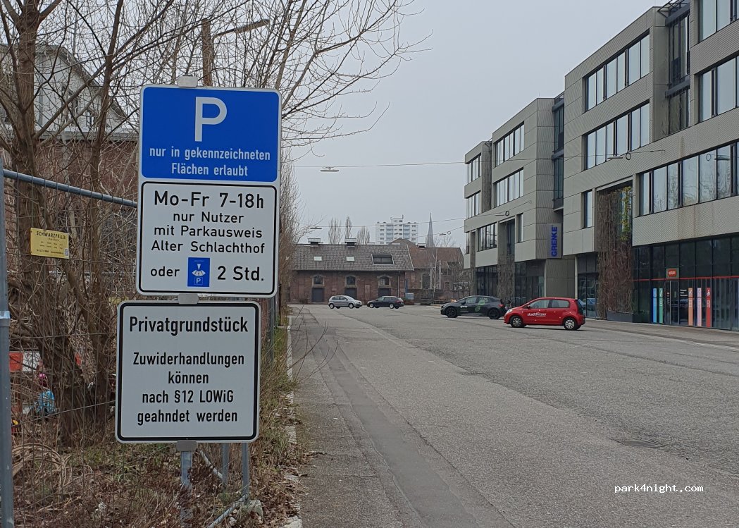 We parked on a side street in the old slaughterhouse on New Year's Eve because it was Tuesday. Perfect for attending an event at the fairground and perfect for sightseeing in the city. The tram stop is about 100m away.