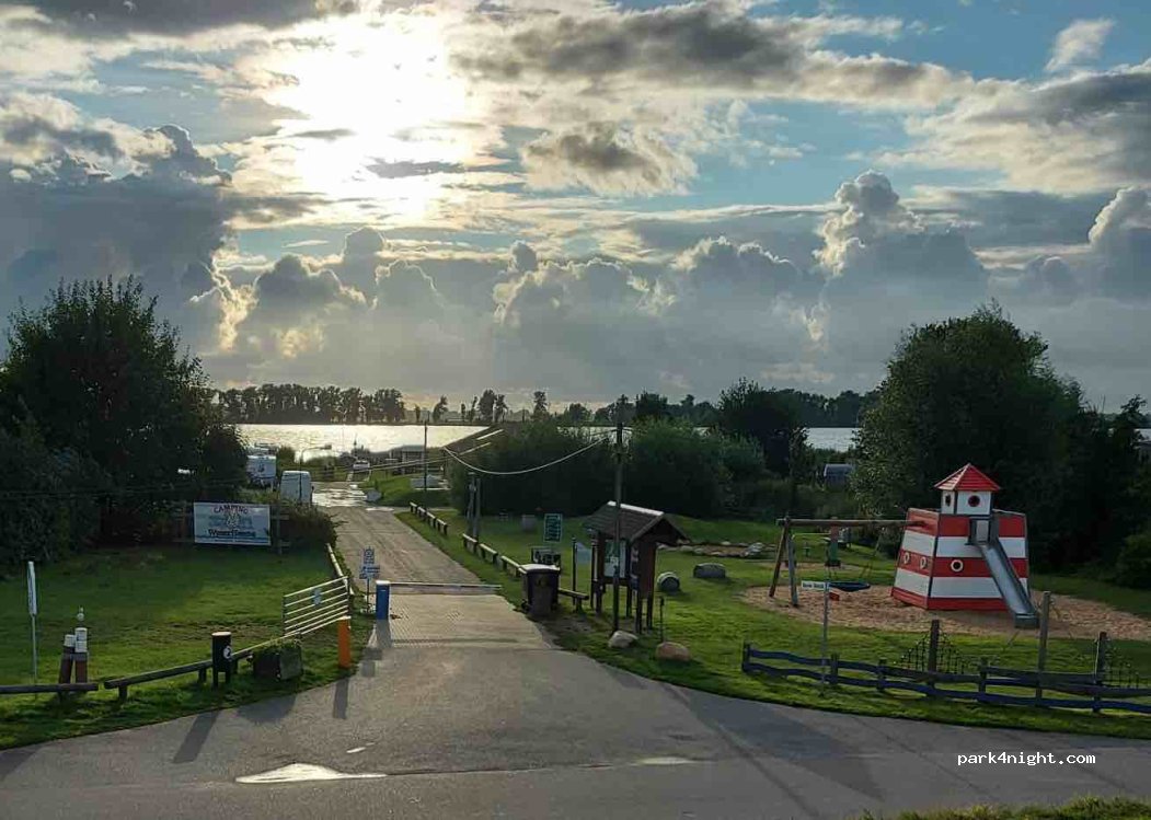 Le parking spacieux derrière le camping, près du port de plaisance, est bien équipé pour les camping-cars : il y a des centrales électriques, des robinets d'eau et une aire d'évacuation des eaux grises et noires. Outre des toilettes et des douches propres, les installations sanitaires centrales et modernes offrent également des installations de lavage et de séchage ainsi qu'un évier chimique.