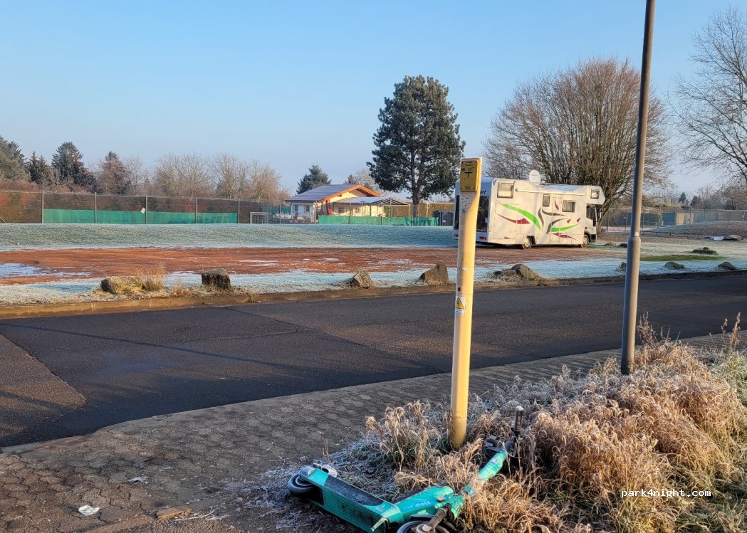 Für ein paar Stunden ok aber wir fühlten uns hier nicht willkommen und sehr unwohl. Die Leute vom Tennisclub, deren Parkplatz hier missbräuchlich genutzt wird, scheinen darüber auch sehr verärgert. Besser auf dem offiziellen Parkplatz gegenüber parken.