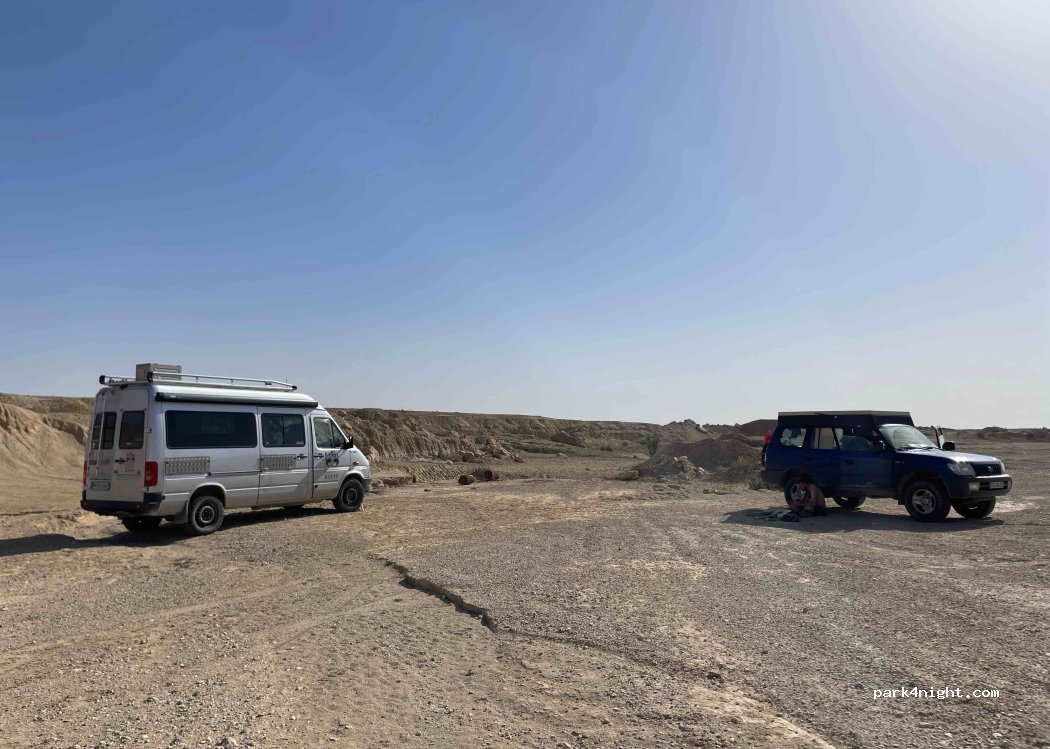 A remote parking spot away from the main road. Accessible via a gravel road and a suitable alternative for visiting the surrounding canyons. Four-wheel drive not absolutely necessary. Not suitable for large motorhomes