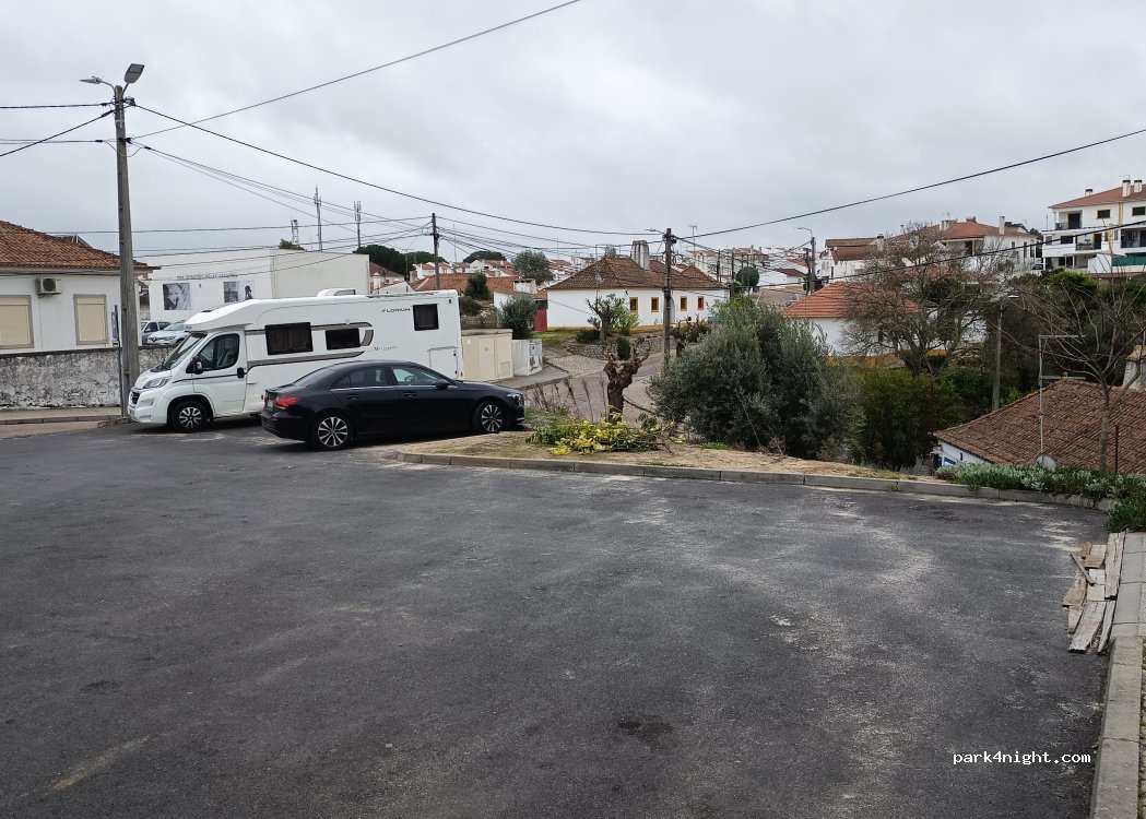 Petit parking intimiste. Vue panoramique et château d'eau juste à côté, à 2 min à pied de l'Office du tourisme et du restaurant O-Alentejano que je vous recommande. (ils vendent aussi des plats à emporter) Fermé le lundi.