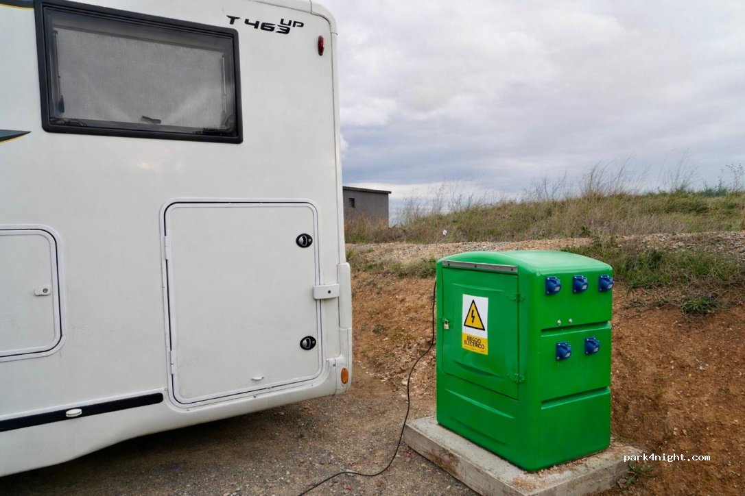 Ampio parcheggio con rifornimento di acqua potabile e smaltimento delle acque reflue.