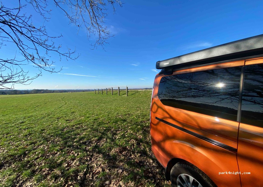 Ein kleiner Parkplatz für etwa 3 Fahrzeuge (CamperVan) mit einer tollen Aussicht,kurz vor einem Reitplatz gelegen. Etwas schräg gelegen . Der Platz ist von der Schnellstraße etwa 10 m entfernt .