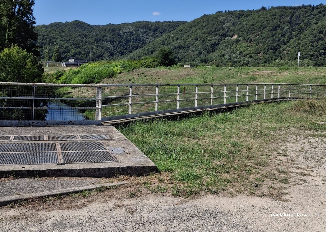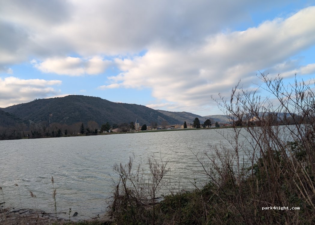 Small parking area on the banks of the Rhone. No signage regarding parking. We stayed there overnight. Very quiet and ideal for a stopover.
