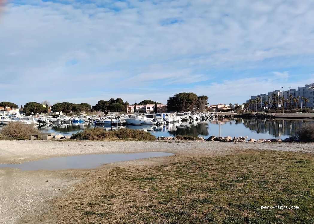 Pequeño estacionamiento/área de descanso en la dársena del puerto.