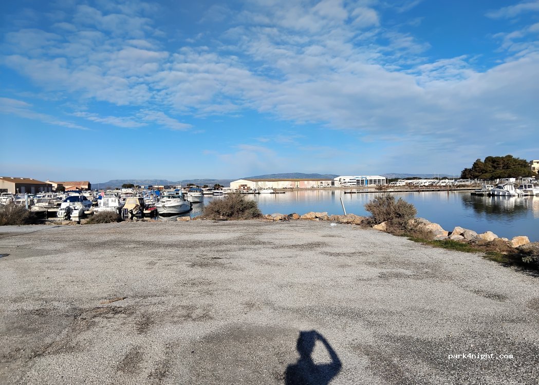 150 m más adelante, siguiendo hacia la izquierda la dársena del puerto, hay otro lugar como éste, éste también sólo es apto para autocaravana, ya que enfrente hay edificios residenciales. Sin embargo, en temporada baja es bastante tranquilo y los propietarios no están presentes, las persianas están cerradas.