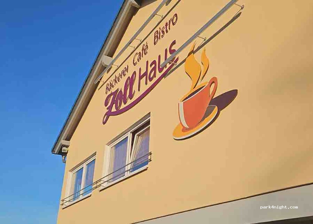 Großer Parkplatz direkt neben einer Bäckerei mit Bistro,Café, ZollHaus Biergarten
