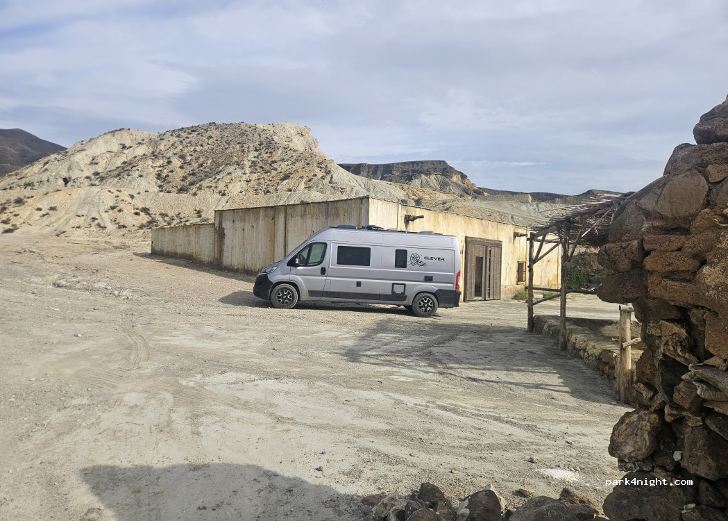 cet endroit est bien en dehors du parc naturel d'alhamilla les nuitée sont autorisées , de nombreux quad et buggys y passent dans la journée. Le commentaire précédent est totalement faux !
