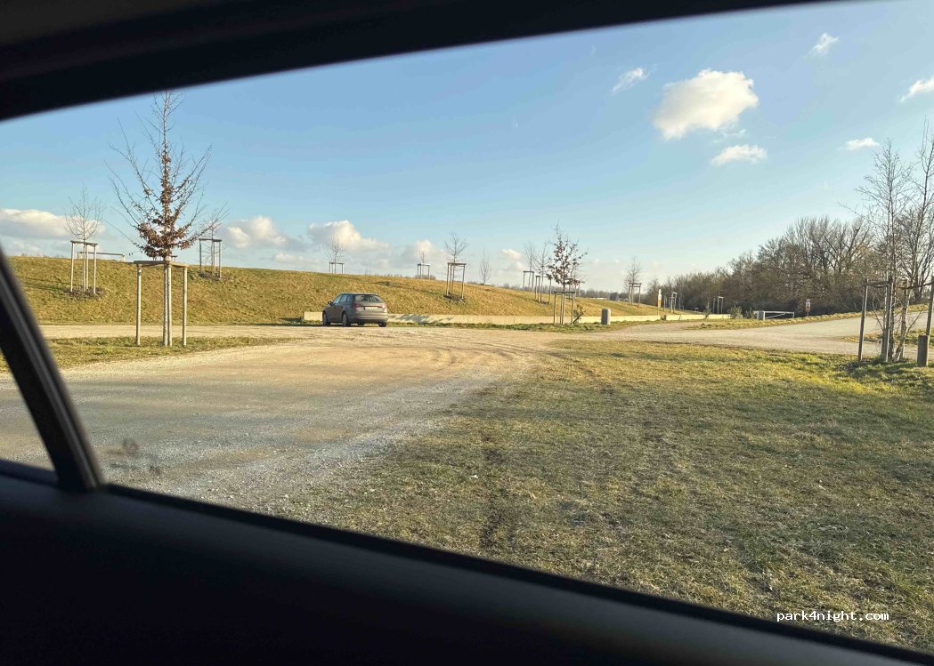 Parkplatz in einem neu angelegten See. Aktuell überhaupt keine Verbotsschilder oder Ähnliches aufgestellt. Bitte benehmt euch, nehmt euer Müll wieder mit und zeigt kein Campingverhalten.