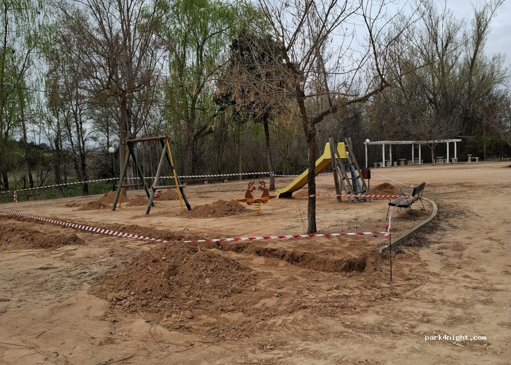 un endroit enfin ombragé, entre Madrid et Barcelone c'est le désert lol conforme aux photos, l'aire de jeux est finie, proche du petit centre ville