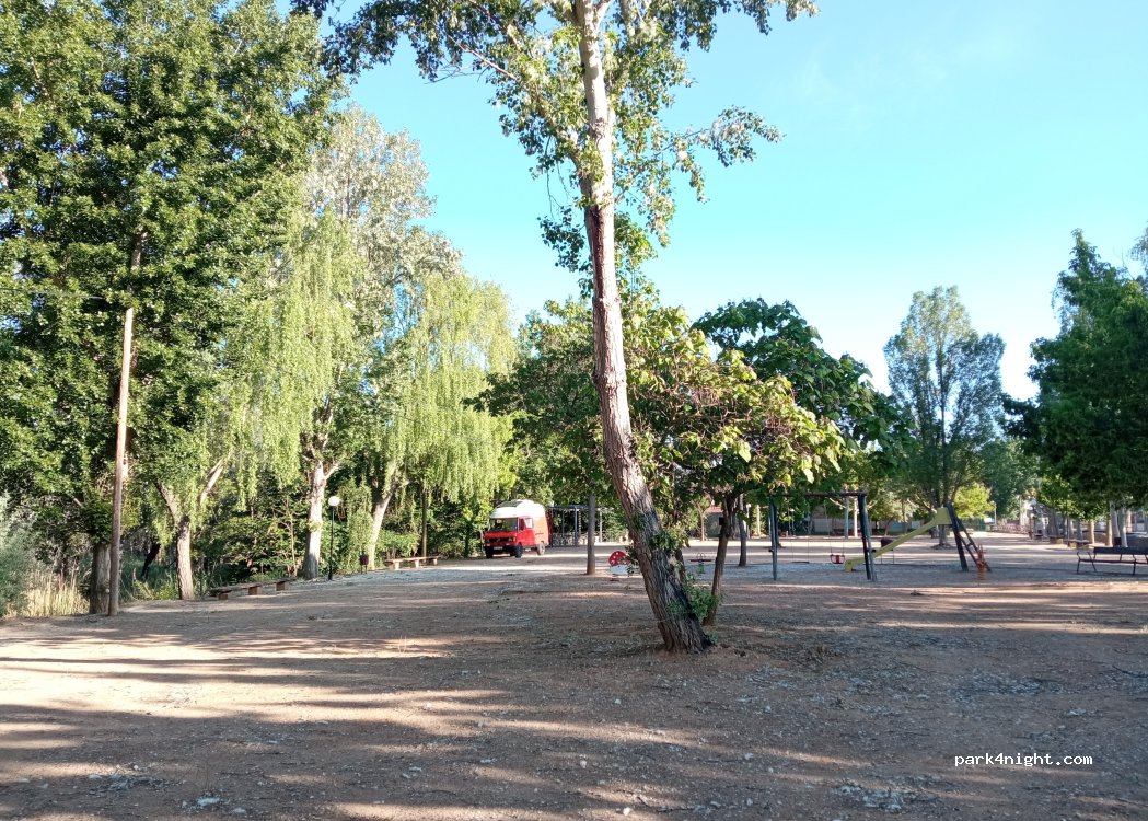 Nous avons dormi sur ce parking qui peu contenir plus de 30 places , nous étions quasiment seul . Il y a une petite aire de jeu pour les enfants et c’est très proche du centre ville de Ariza . Parking gratuit pendant 3 jours. Aire de vidange, on peut vider les toilettes et remplir l’eau. Nous avons adoré ce parking.Merci Ariza pour ce parking très agréable.