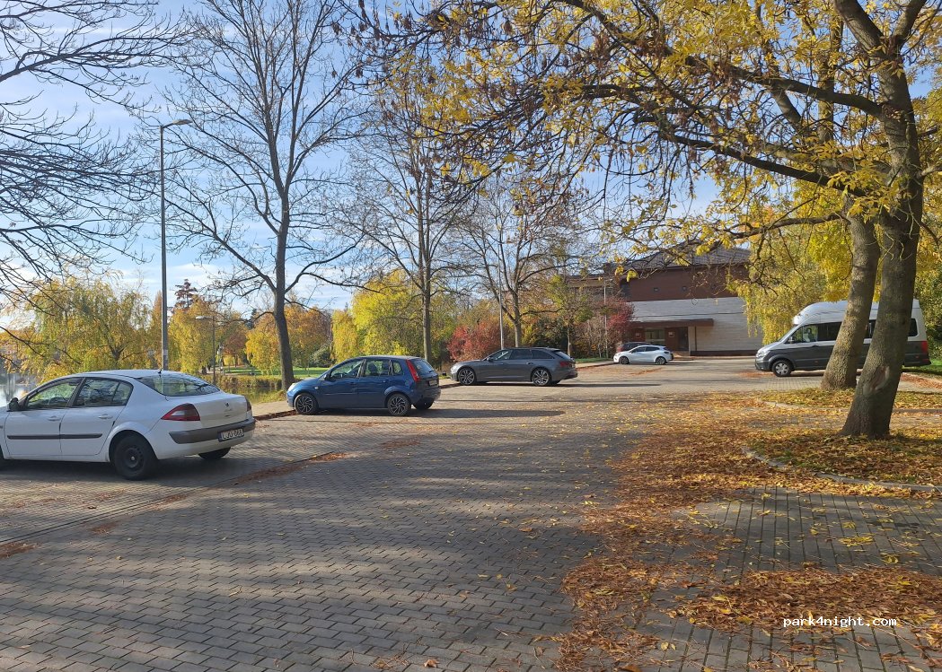 Kostenlose Parkplätze neben einem kleinen See, 30 Gehminuten vom Stadtzentrum entfernt.