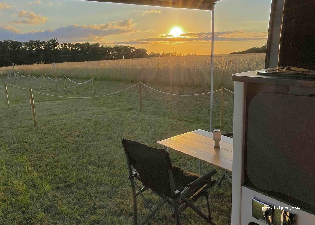 Camping sur une prairie verdoyante aux abords de Neudorf, en pleine nature.