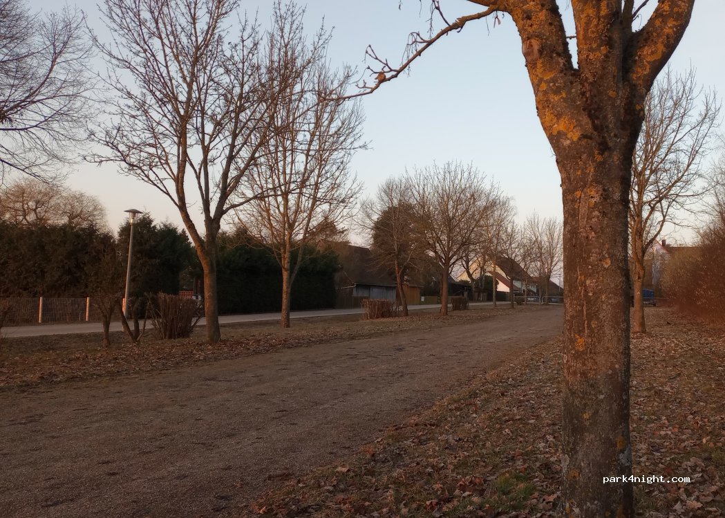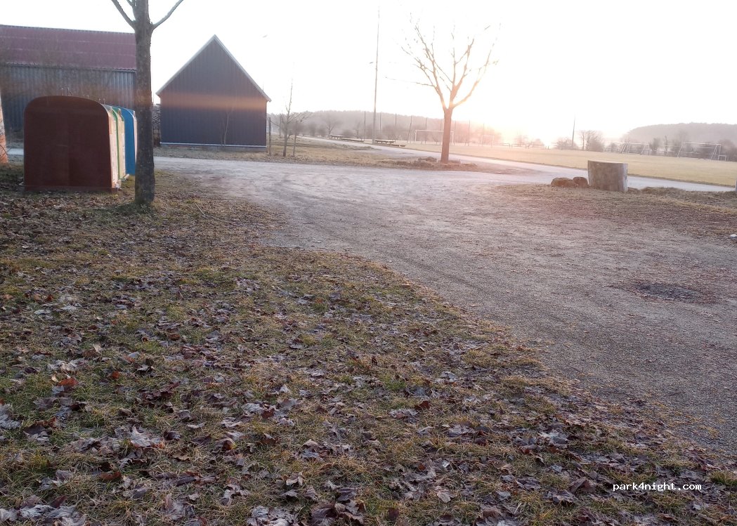 Sehr ruhiger Parkplatz zwischen Bäumen an der Sportanlage Flachslanden.