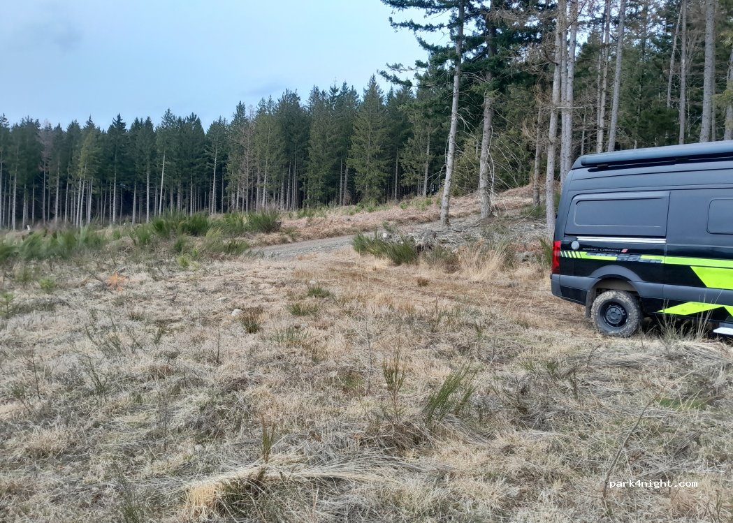 Am Waldrand, mit Blick auf die Berge. Ruhig und abgelegen. Ebener Parkplatz.