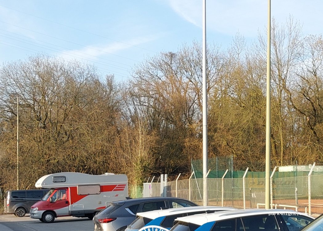 Parkplatz am Tennisplatz, sehr ruhig.