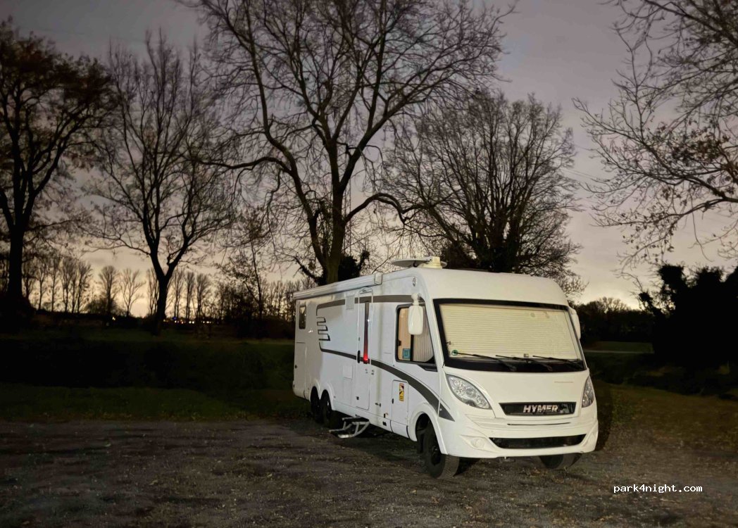 Amplio y tranquilo aparcamiento de grava junto al campo de deportes en el distrito de Kranenburg de Nütterden.