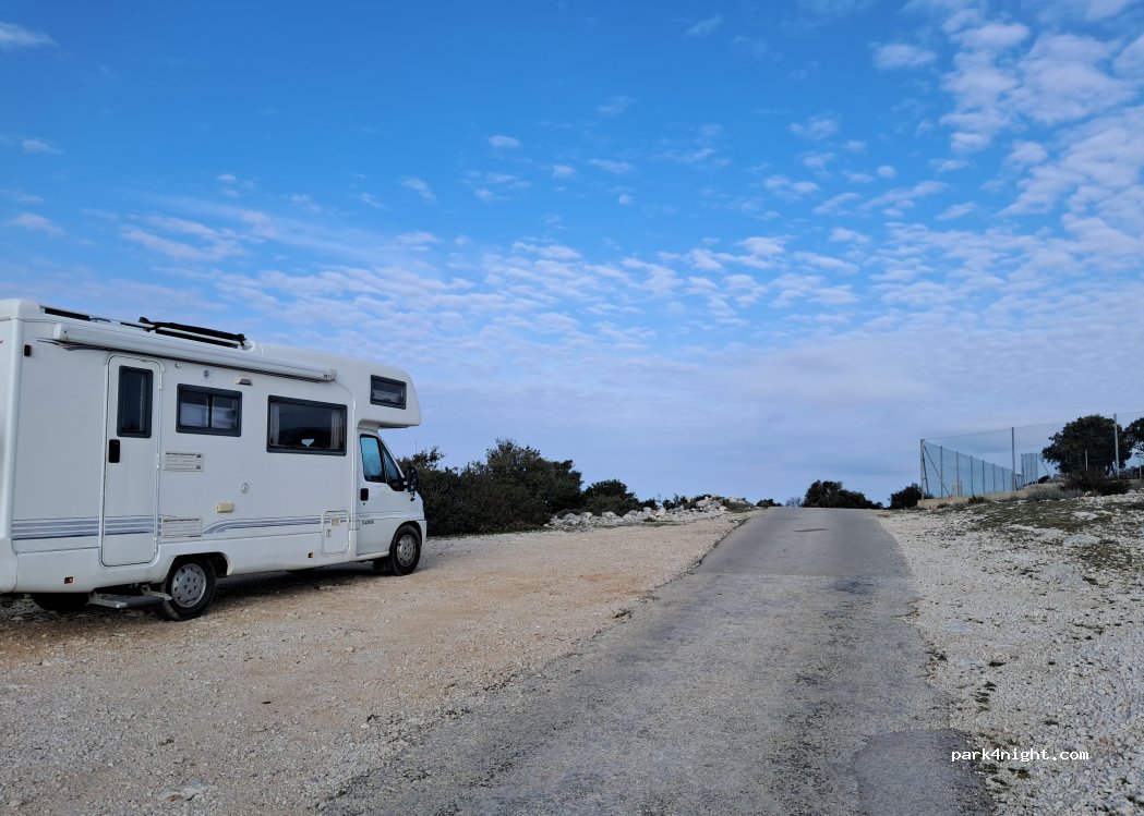Una ubicación plana al lado de la carretera con hermosas vistas a ambos lados, muy tranquilo. Sin servicio. Salida para paseos a calas. Un restaurante bien valorado a poca distancia, cerrado fuera de temporada.