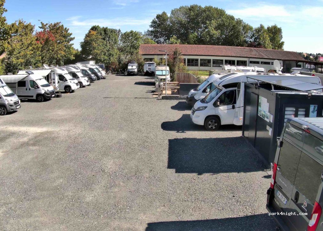Geschotterter Stellplatz am Mühlbach in einem Gewerbegebiet. V&E, kostenloses WLAN und Strom sind vorhanden. Toiletten und Dusche fehlen. Platz ist mit dunklen Steinen geschottert, die sich bei Sonne sehr erwärmen. Ortskern mit Gastronomie, einige Supermärkte und Bäcker fußläufig erreichbar. Betreiber ist nett und auskunftsfreudig. Für meinen Geschmack zu viel Video-Überwachung am Platz.