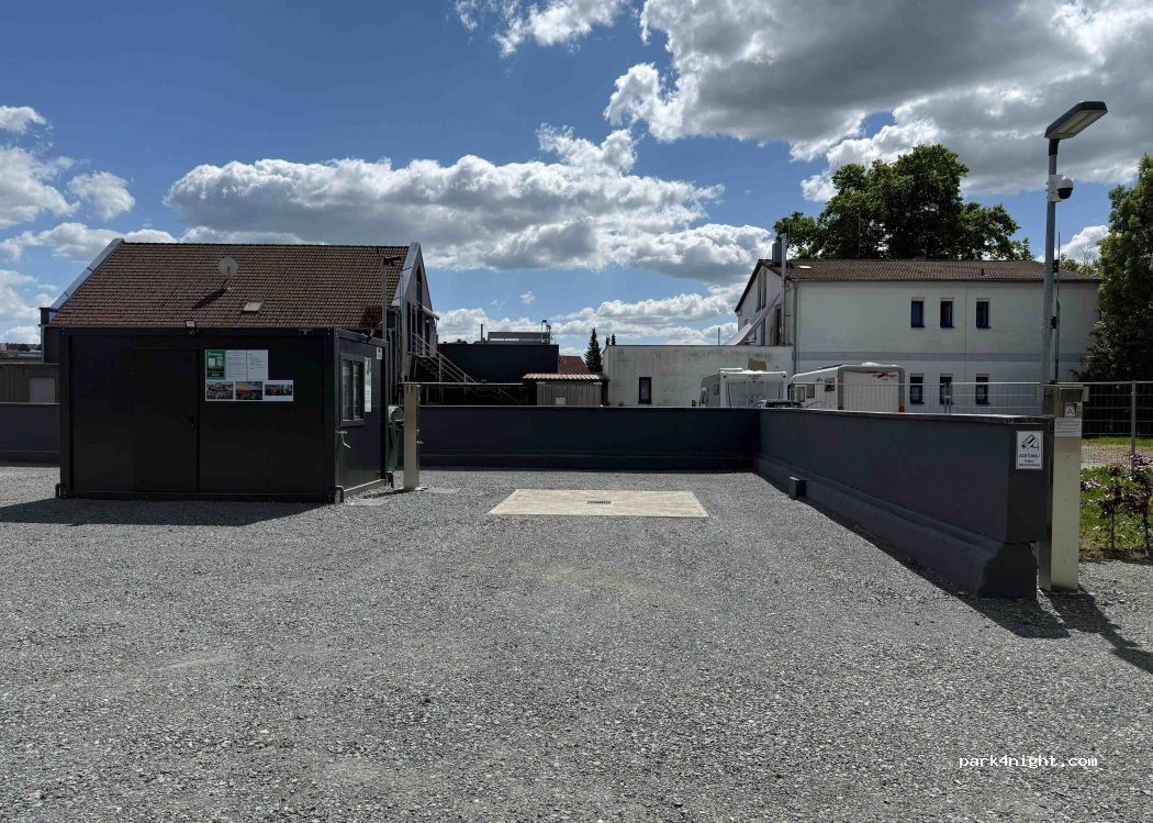 This pitch is centrally located in Lichtenfels. It's ideal for large motorhomes. The town center is a 10-minute walk away. A retail park with all amenities is within sight. A cycle path directly adjacent to the pitch leads to all the local attractions. Pitch fees can be paid in cash, via mailbox drop-off or via an app. Electricity fees are paid with coins or a payment app. Water fees are paid exclusively in coins. Disposal of the cassette toilet and greywater is via the floor drain and is subject to a fee for passers-by. However, it is free for overnight stays. Each pitch has an electrical connection. The pitches are located on level, gravel lawns (10 m x 6 m). Caravans must be uncoupled. There is a separate parking space for towing vehicles (cars) or motorhome trailers. Reduced fees apply to passers-by from 8:00 PM to 8:00 AM the following day. Reservations are not possible.