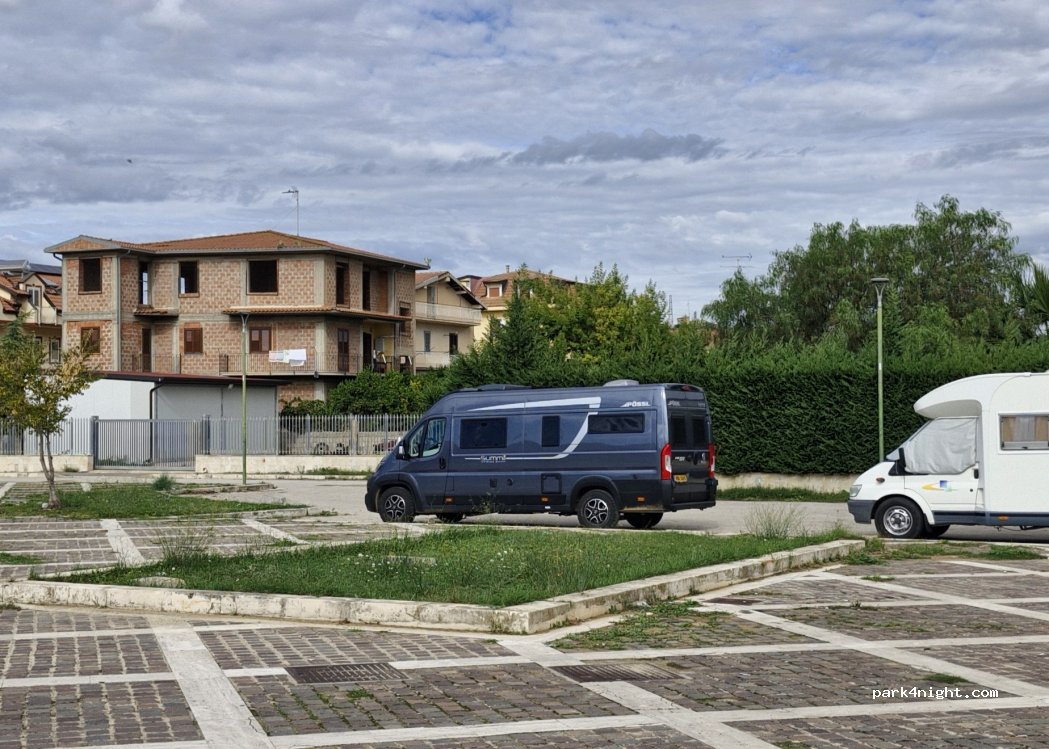 Ampio parcheggio per camper di qualsiasi dimensione,senza servizi.Zona silenziosa e tranquilla ed illuminata.Accanto villa comunale con parco giochi per bambini.Nelle vicinanze supermercato Eurospin, Acqua e Sapone,bar pasticceria e vari negozi.Percorrendo tutto il viale Generale Cannada si arriva al centro del paese.