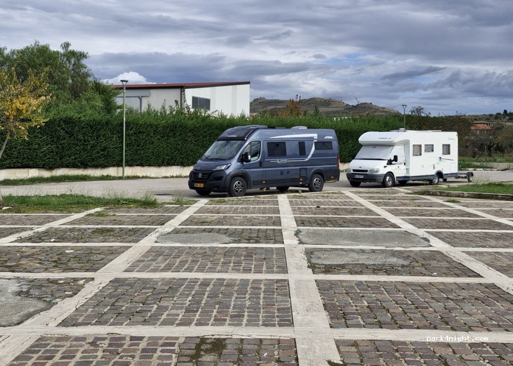 Large parking for campers of any size, without services. Quiet and peaceful and illuminated area. Next to the municipal villa with a children's playground. Nearby Eurospin supermarket, Acqua e Sapone, bar pastry shop and various shops. Going along the entire Viale Generale Cannada you arrive at the center of the town.