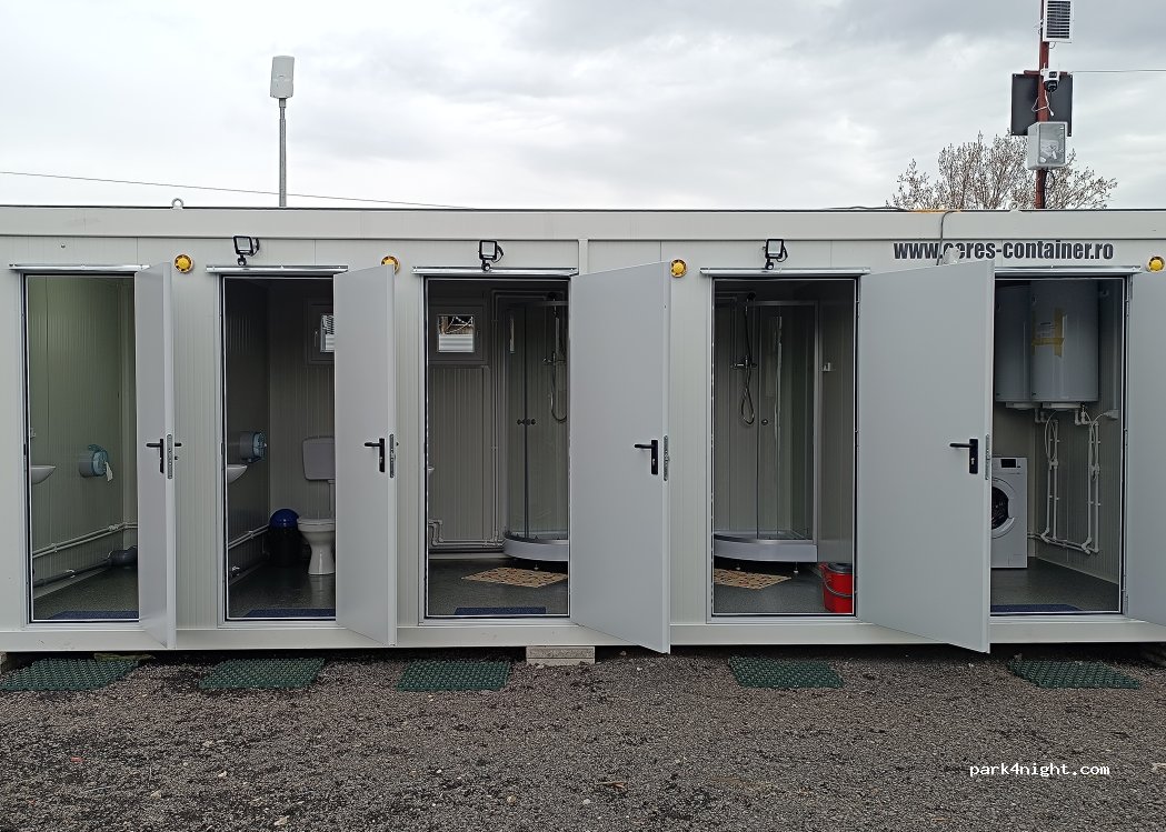 Un camperstop deosebit, nou, aproape de inelul de ocolire sl orasului. 2 toalete foarte curate ambele cu chiuvetã, douã duşuri, cu apã fierbinte, jet puternic si foarte curate si acestea. Masinã de spãlat si dryer, loc de spãlat vasele, apã, loc de deversare ape negre si ape gri, dotãri care îti permit sã petreci multe zile în Brasov ca sã poti vizita linistit. Cu gazde deosebit de primitoare!