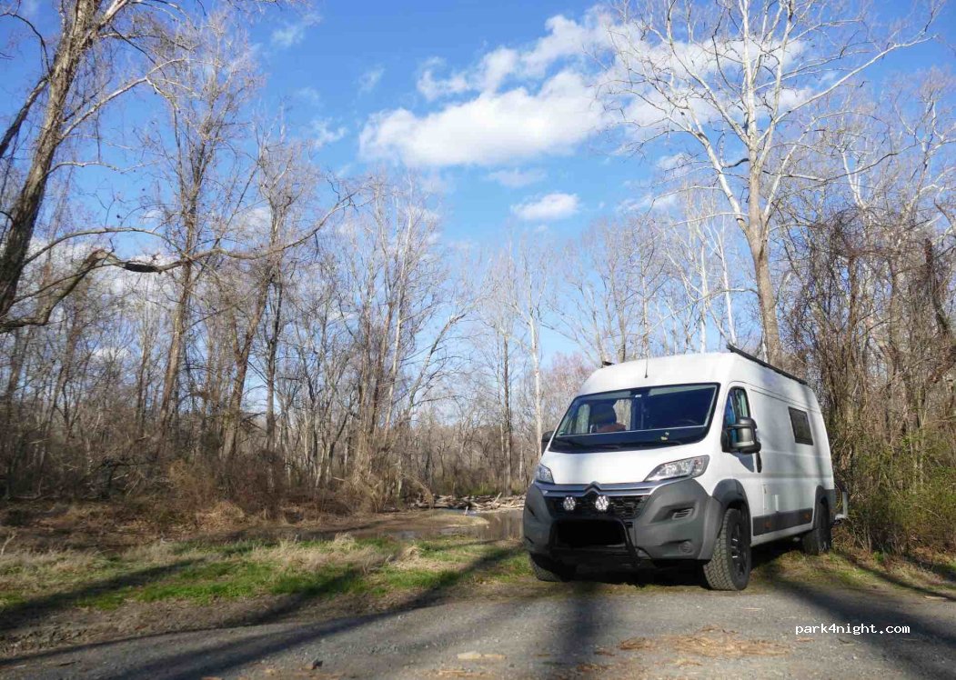 Gravel lot along the road to the Old Rag Hike. Nothing special, quite at the river, no rubbish
