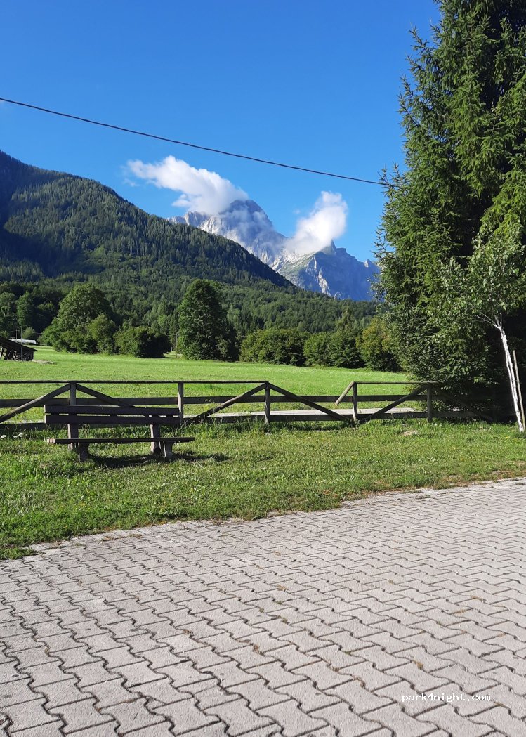 buona area di sosta, ottima vista sulle montagne,la ciclabile passa dietro e siamo stati con i bimbi ai laghi di fusine che distano pochi km. Il pagamento con il pos alla sbarra non è sempre possibile ma basta contattare il gestore, molto disponibile, e tutto si risolve.