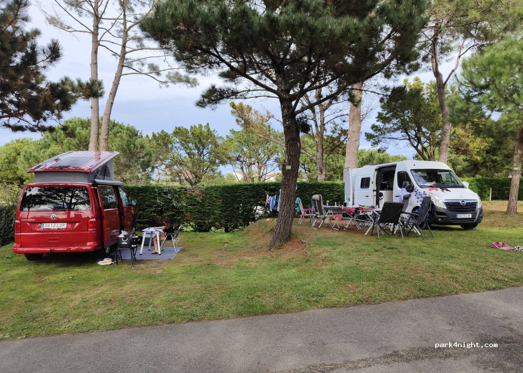 camping trouvé inextremis le samedi en fin d'après midi du pont du 14 juillet pour un van,accueil aimable, accompagnement à notre emplacement qui est vaste,plat et à l'ombre. piscine à toboggan très agréables pour les enfants, un sentier mène à la plage, sanitaires très propres malgré l'affluence, nuit calme, je recommande !