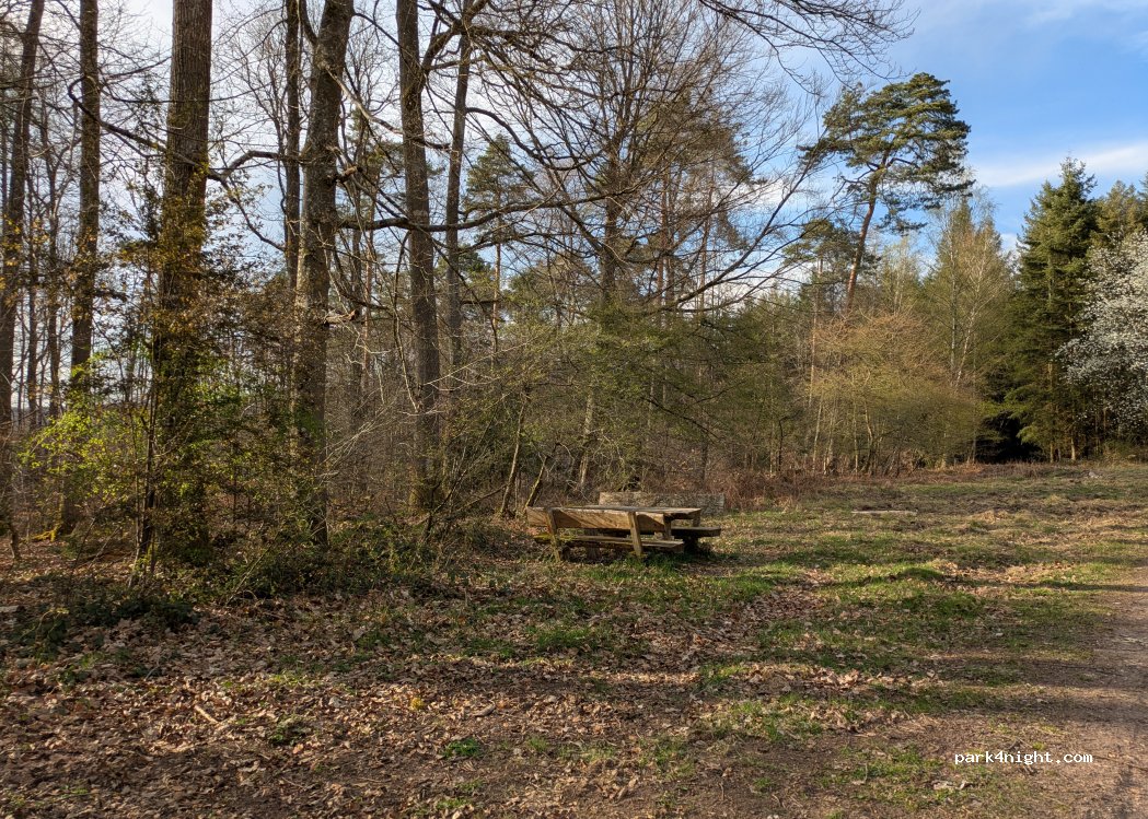 Follow the sign for the hiking parking lot 1200m down the road to Leimen. There's a large hiking parking lot right after the Röderhof farm. Very quiet, in the forest. There are only two picnic benches, which are a bit dated. No toilets, etc., just nature! Please take your trash with you!