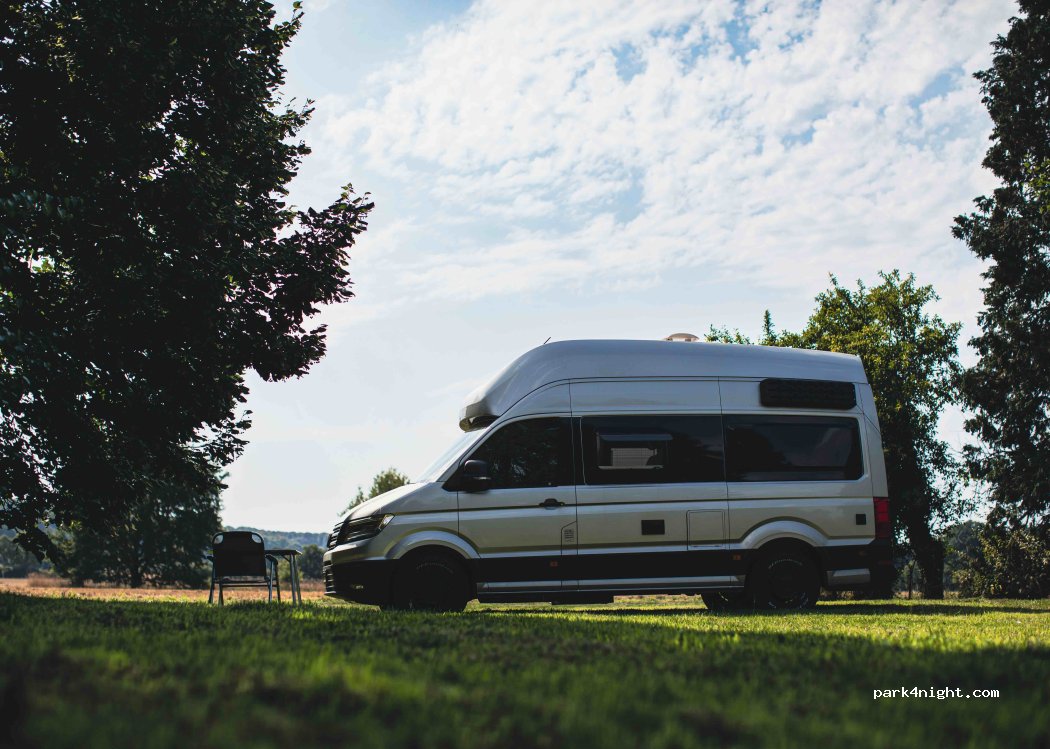 Der Platz ist eine weitestgehend ungenutzte und stellenweise unebene Wiese, welche bislang noch nicht als Stellplatz angeboten wurde. Bevor wir hier ggf. investieren, wollen wir zunächst einmal die Nachfrage ermitteln. So kann zunächst Wasser über eine Schlauchleitung und Strom über eine einfache Schuko-Mehrfach-Steckdose (max. 250W, also keine Elektroheizung möglich) entnommen werden.