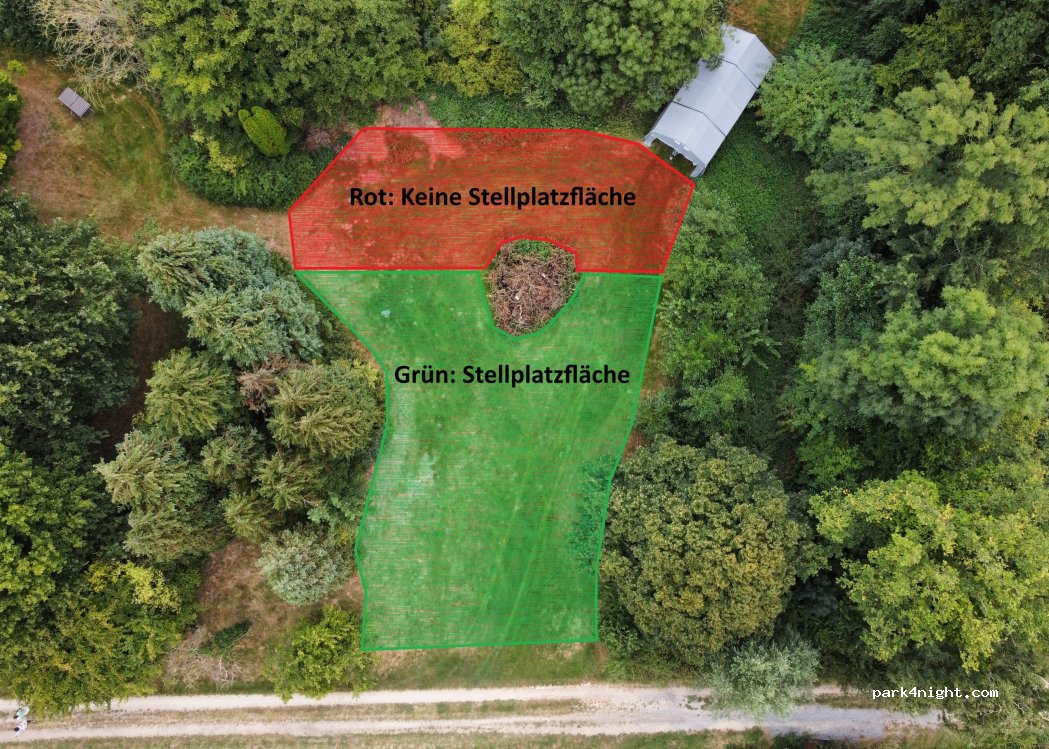 La parcela es un prado prácticamente sin uso y, en algunos tramos, irregular, que no se ha anunciado anteriormente como parcela. Antes de invertir aquí, queremos evaluar la demanda. Se puede obtener agua mediante una manguera y electricidad mediante un enchufe múltiple Schuko (máximo 250 W, por lo que no es posible la calefacción eléctrica).