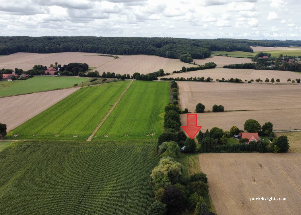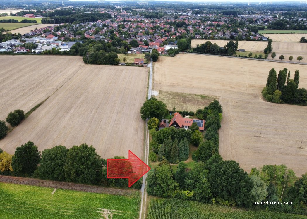 Der Stellplatz ist schön abgelegen (500m von nächster Hauptstraße entfernt) im Außenbereich von Havixbeck, aber noch nahe genug am Zentrum. So ist das Zentrum ca. 2,3km entfernt. Das nächste Restaurant fußläufig sogar nur 500m.