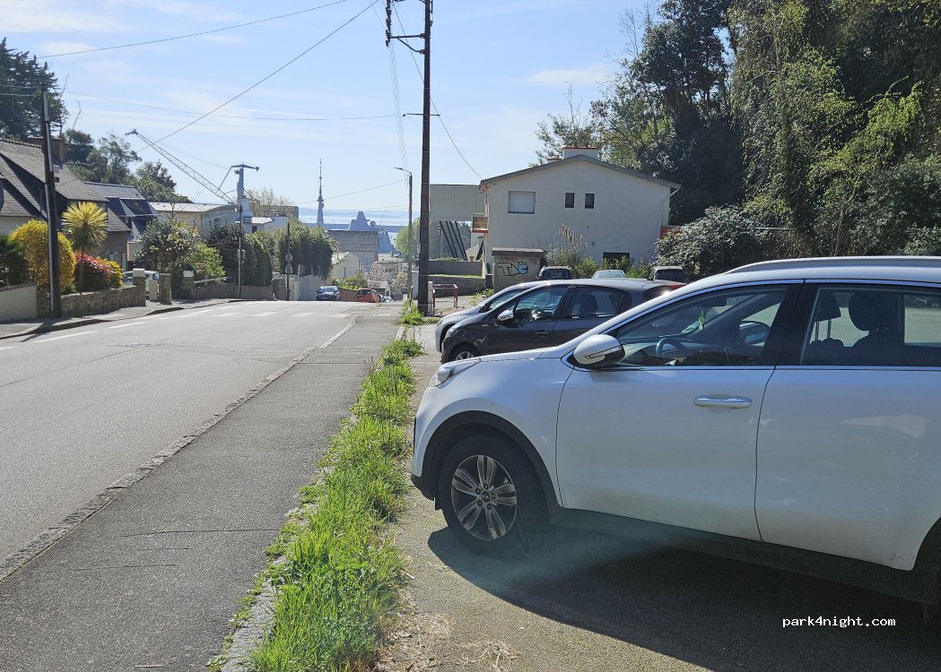Parking à 200m de la base naval, nombreuses places légère pente mais pour visiter la ville très bien.