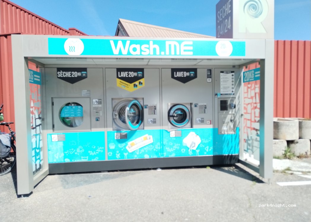 Automatic washing machine and dryer station at the Intermarché store. Gas is also available.
