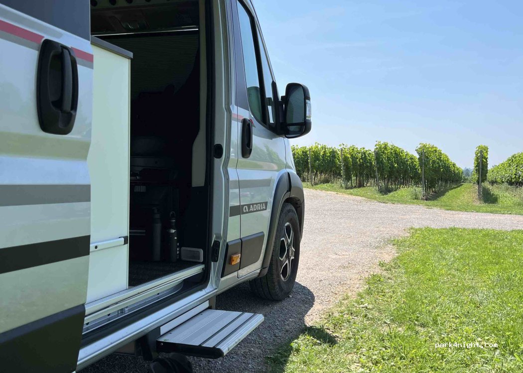 3 Stellplätze sind ausgeschrieben, trotz Reservierung wären wir die Nummer 6(!) gewesen, entsprechend zusammengepfercht. Übrig war ein liebloser Durchgangsplatz auf gepflastertem Weg in der prallen Sonne. Der Grünstreifen war nicht nutzbar, da frisch eingesät. Wir sind unverrichteter Dinge weiter gezogen. Hat unsere Vorstellung von einem Platz "beim Winzer" leider nicht im Ansatz erfüllt.