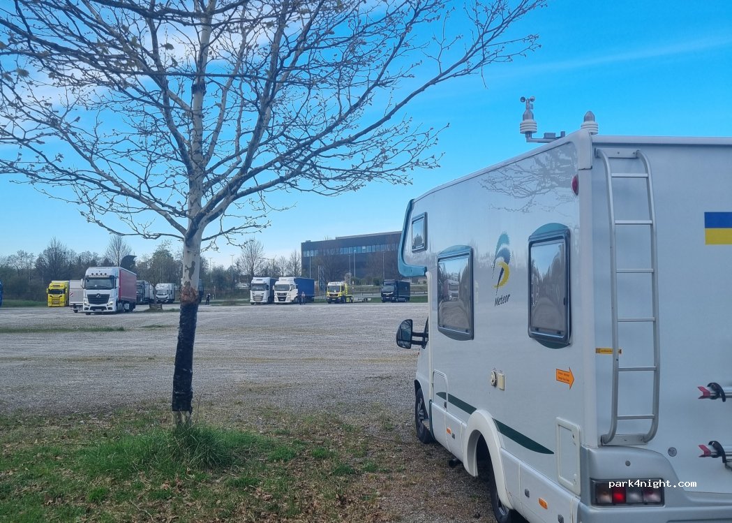 Large unpaved area behind the temporary ZF employee parking lot. No prohibition signs. Many trucks park there. On certain days, the gravel area is used for flea markets; otherwise, it's free. A good place to visit the Friedrichshafen Trade Fair if you're traveling by RV, as it's otherwise extremely difficult, if not impossible, to find anything in Friedrichshafen.