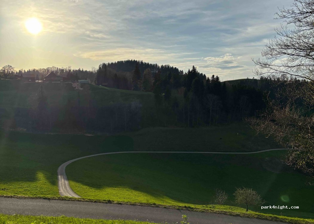 Super spot au milieux de la nature, place à plat, cependant il se trouve sur la parcelle d’un paysan qui n’a pas hésité à nous taxer 20.-. Tranquillité absolue parcontre