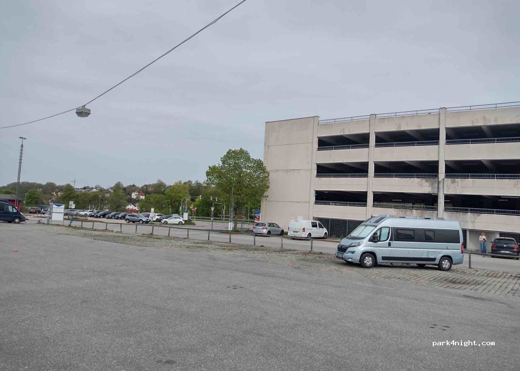 Zentrumsnaher (Tages-) Parkplatz für Wohnmobile aller Größen. Übernachtung nicht verboten, aber keine Infrastruktur und zwischen Straße und Gleisen. Bezahlung nur per Parkster-App.
