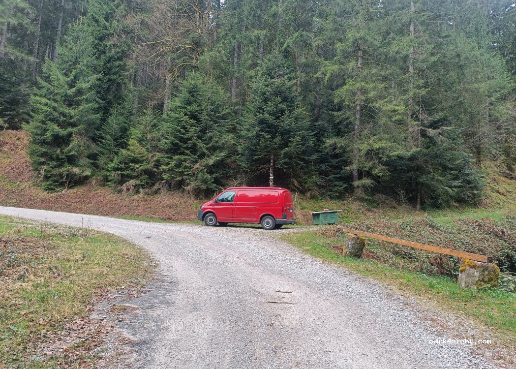 Endroit calme, juste à côté de la route principale. Un petit ruisseau à proximité crée un agréable bruit de fond. Pas de piétons ni de randonneurs en avril, lors de notre passage. Terrain en grande partie nivelé pour garer un véhicule de 5 m maximum.