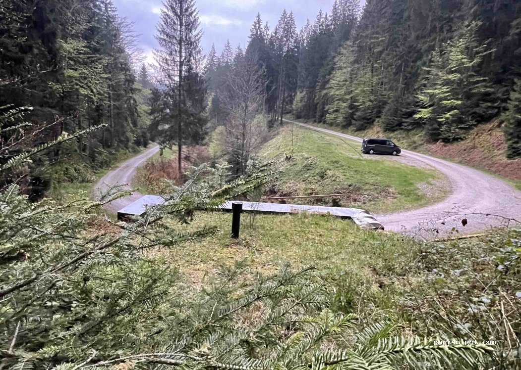 Ruhiger Platz abseits der Hauptstraße. Ein kleiner Bach in der Nähe sorgt für angenehme Geräuschkulisse. Im April, als wir dort waren, waren keine Fußgänger oder Wanderer zu sehen. Der Boden ist größtenteils eben, sodass ein Fahrzeug mit einer maximalen Parkhöhe von 5 m geparkt werden kann.
