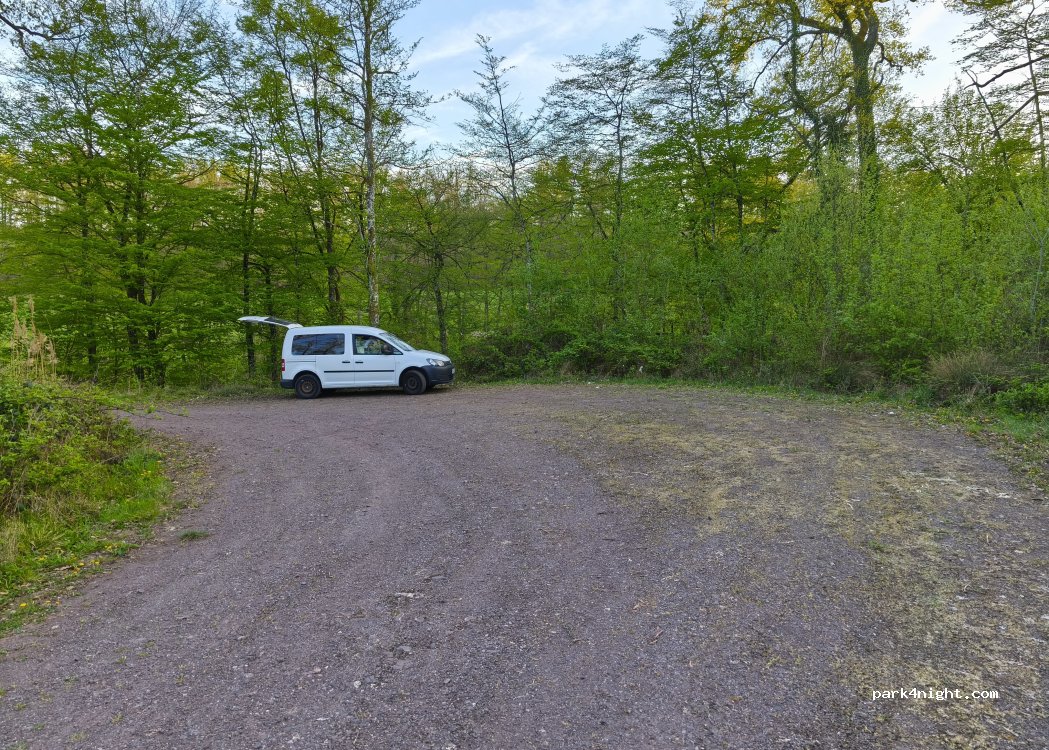 If you are just looking for tranquility and a place to sleep, this spot fits the bill. We easily moved a 6.40 m Ducato Maxi here. In fact, 50 meters down the forest track, there is a more level spot beside the track. I would have rated it five if it were more beautiful, but the scenery is not special, as you are below main road level.