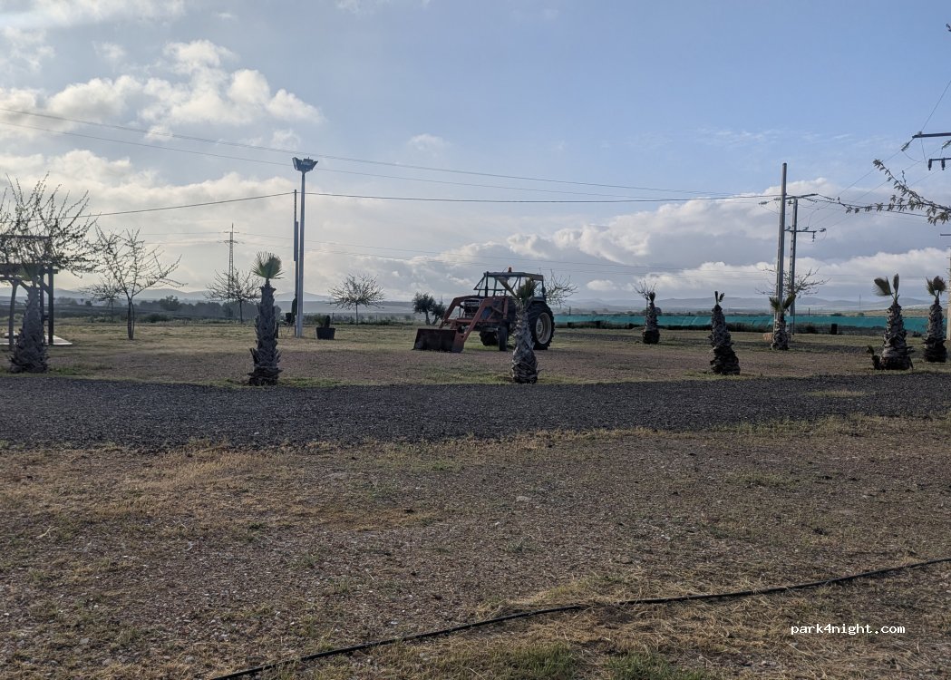 Private overnight RV park in a gated area. Includes wastewater and graywater disposal service. Electricity connection, water refilling, and a picnic area. Cafeteria, restaurant, shop, and gas station are available.