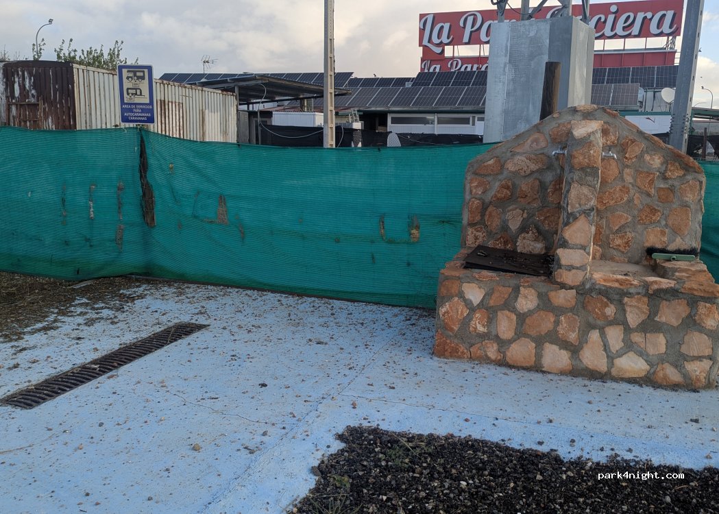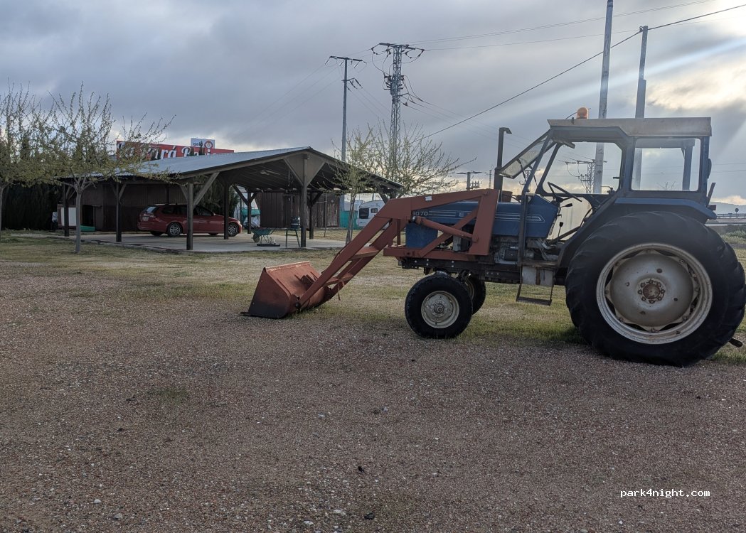 Buen sitio para pernoctar cuando vas en ruta. Tiene una zona cubierta con mesas y sillas donde puedes cenar al fresquito. 10€ con luz y el dueño muy amable.