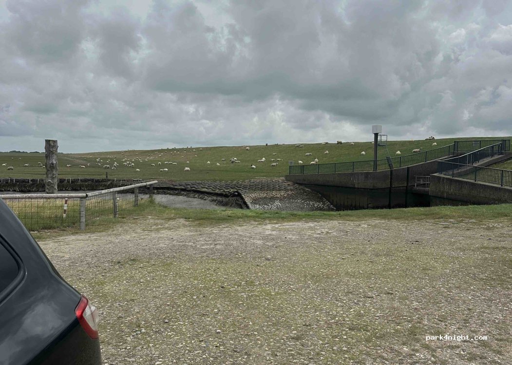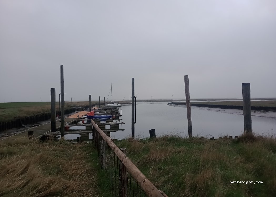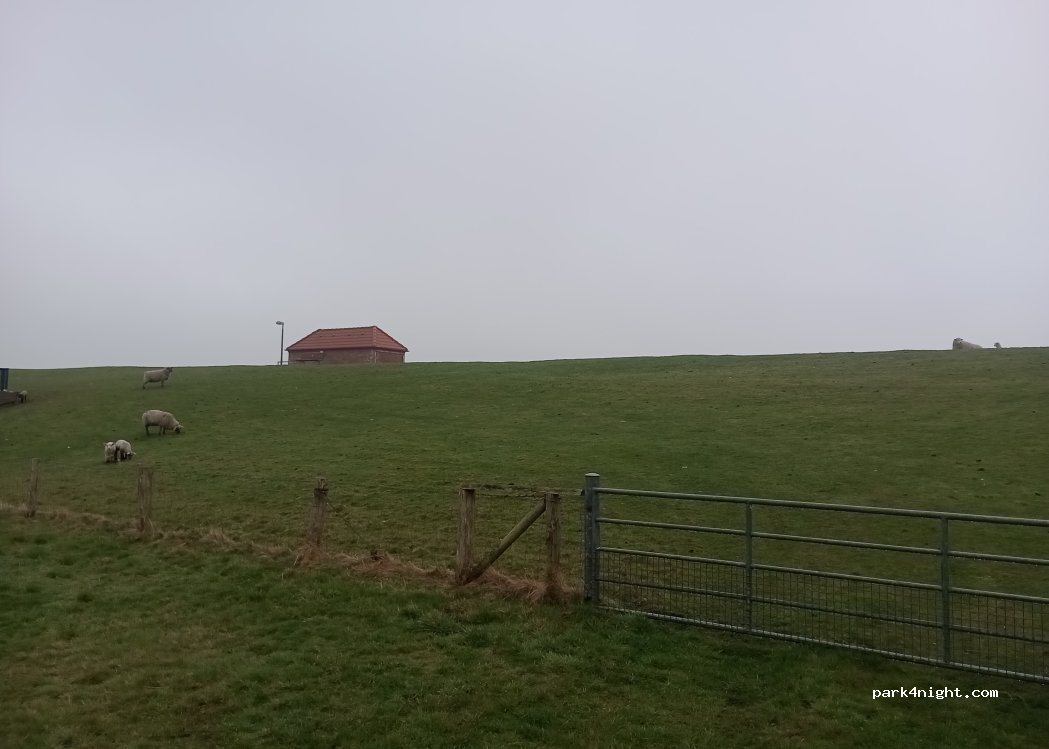 Wir haben einen Anwohner gefragt, ob wir auf dem Feldweg stehen bleiben können und er gab uns den Tipp, noch über den Deich bis zur Hütte des Sportbootclubs zu fahren.