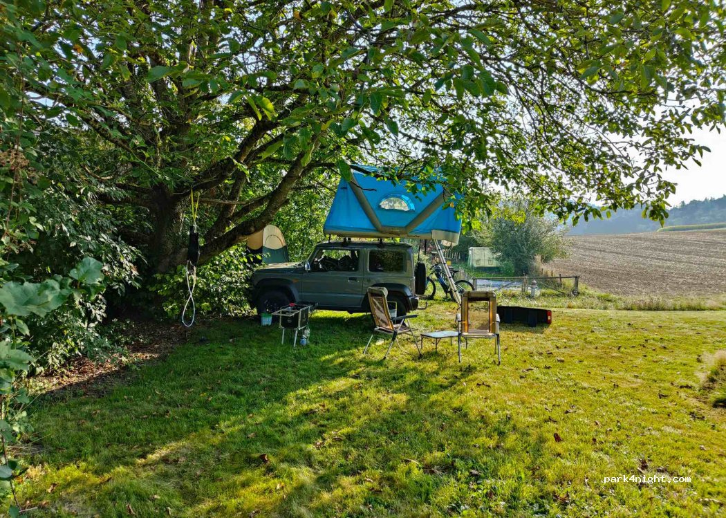 Sur notre prairie, nous proposons un emplacement confortable pour les campeurs (bus ou tente), juste à côté d'un grand arbre ombragé. À quelques centaines de mètres du camping, vous profiterez d'une vue magnifique sur la vallée de Chrüzlibach jusqu'à Bad Zurzach et bien au-delà.