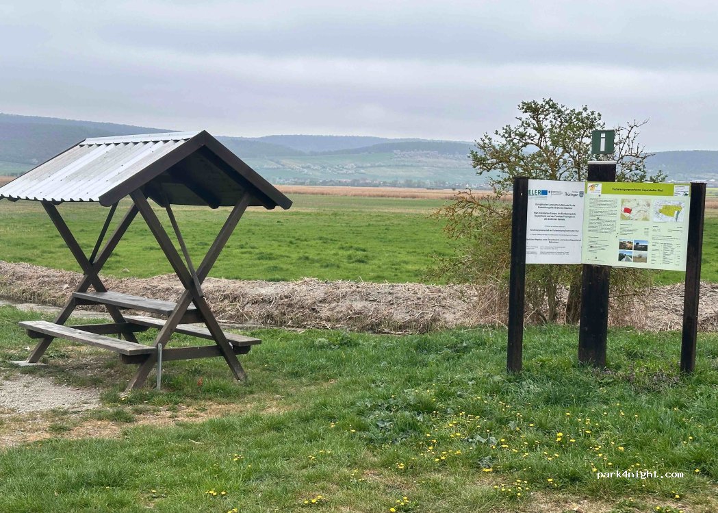 Amplio aparcamiento gratuito en Esperstedter Ried. Muy tranquilo, lejos de la carretera, pero no del todo recto. Punto de observación de aves a unos 600m.