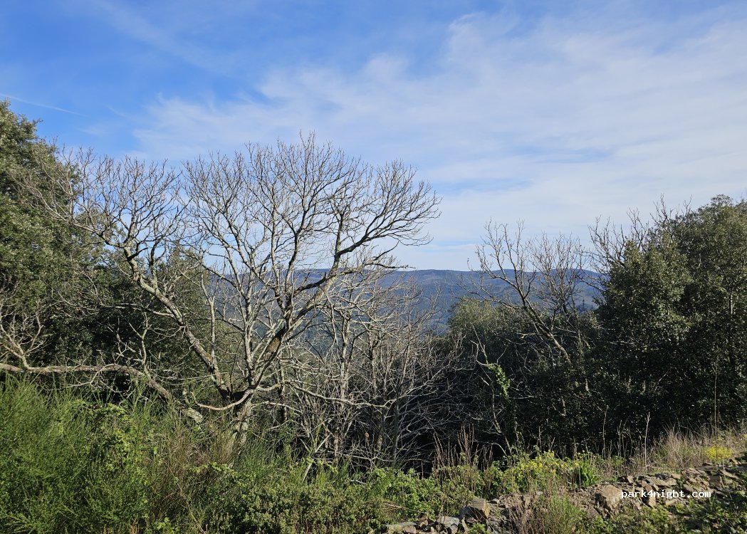 Lugar aislado en plena naturaleza. 2-3 parcelas al borde de una pista forestal, sin servicios, 3 barras de 5G. Muy tranquilo, sin ruido salvo los pájaros, hermosa vista. Por la tarde pasaron por allí 2 excursionistas y 2 ciclistas de montaña.