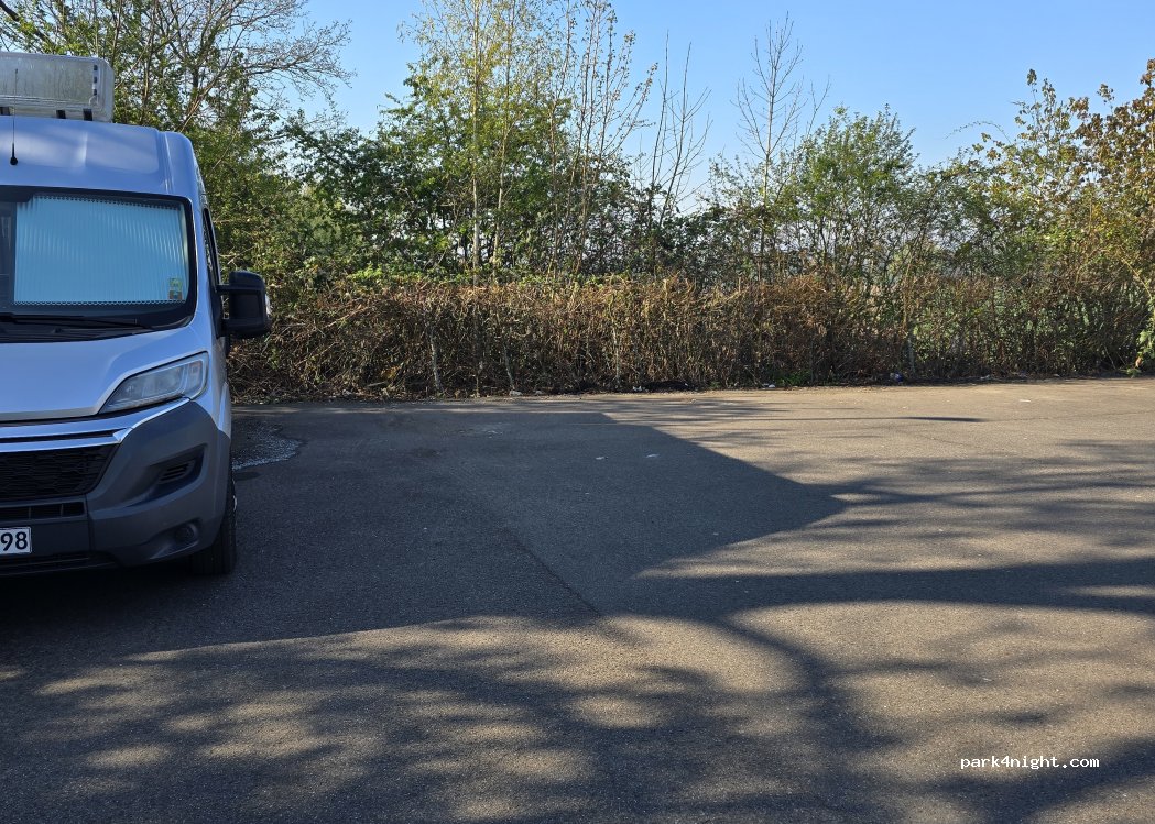 Just spent the night here. Just a large car park but very quiet. There is some train noise but not very loud and it didn't disturb us. Free to park and level.